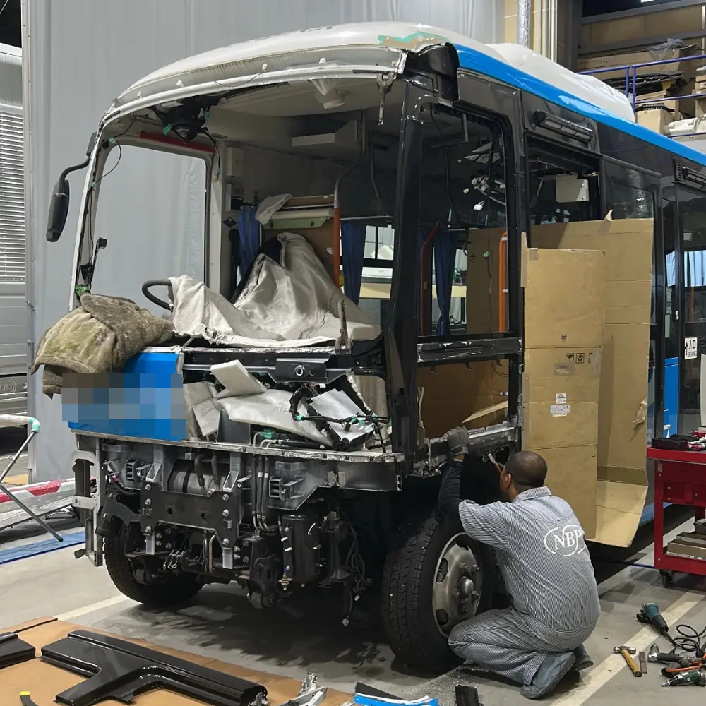破損したバスの修理を行いました。