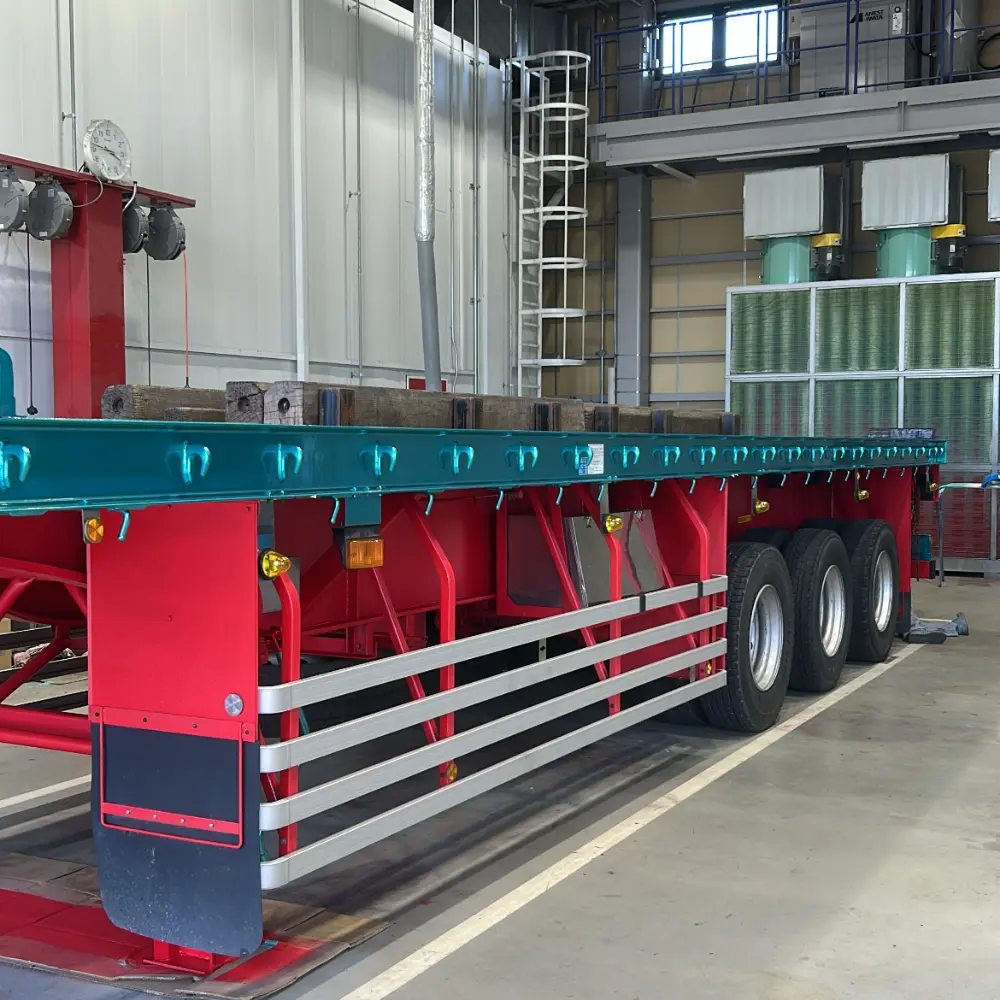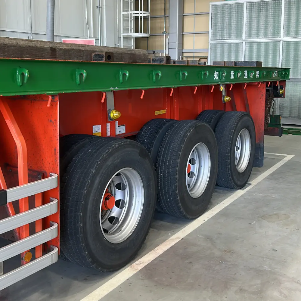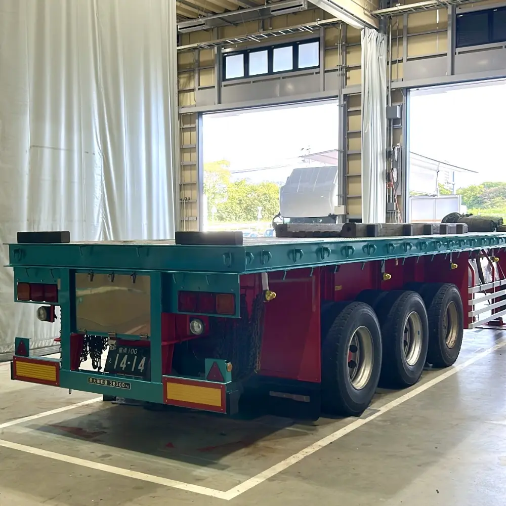 トレーラーのカラーをオレンジから会社の新しいカラーに変更されたいとのご希望で、レッドの塩害塗装を行いました。